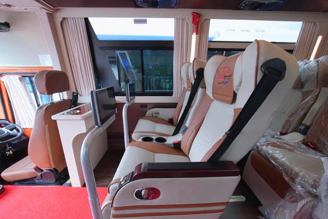 WiFi, AC, leather seats, USB charging, TV, and seat lighting. Long-distance travel done in style.